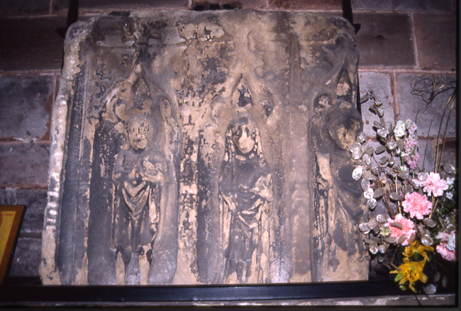 13世紀のレレドスの一部。左端は洗礼者ヨハネ、中央は聖ウィニフレッド、右端は聖ブノー。