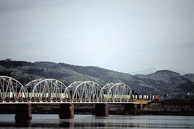 常磐線の入り口。阿武隈川に架かる美しい橋がある。